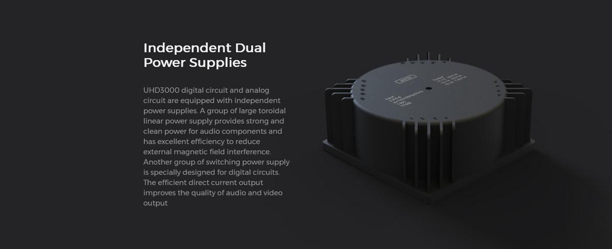 - High-quality switching power supply + large toroidal linear power supply, which is specially designed for audio and video circuits independently to ensure strong power source and good signal output.