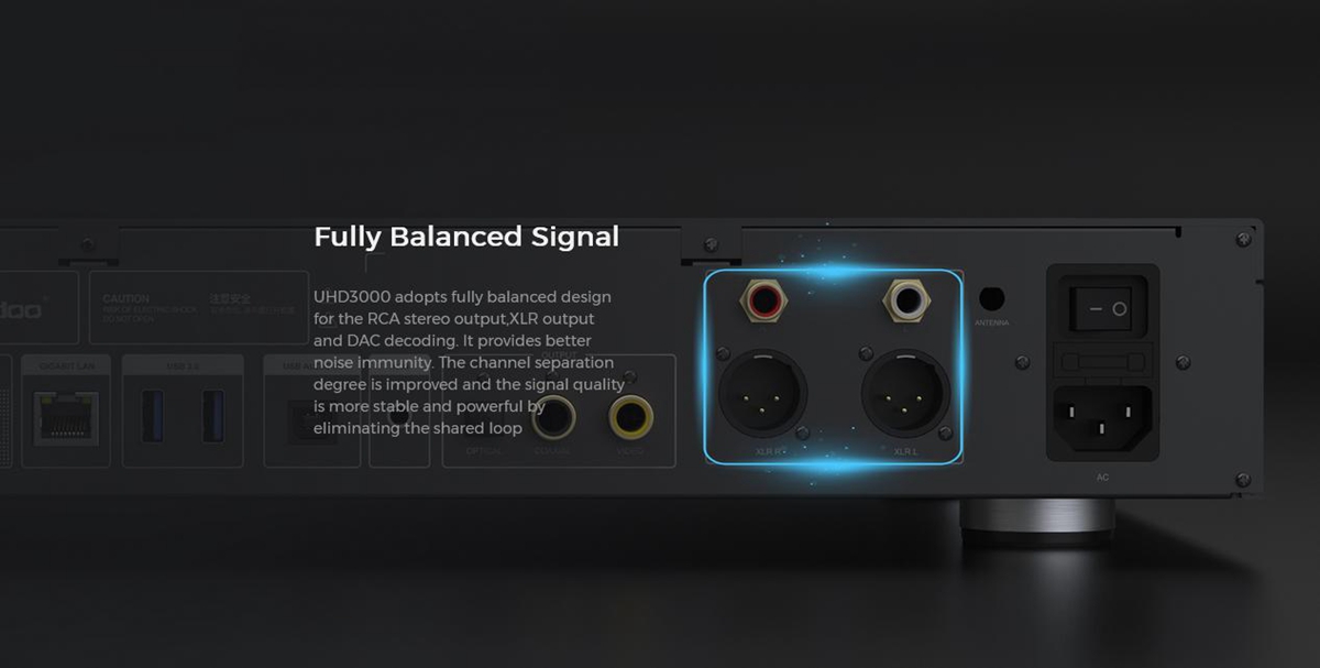 - High-fidelity audio decoding supports XLR full balance and RCA analog audio output.