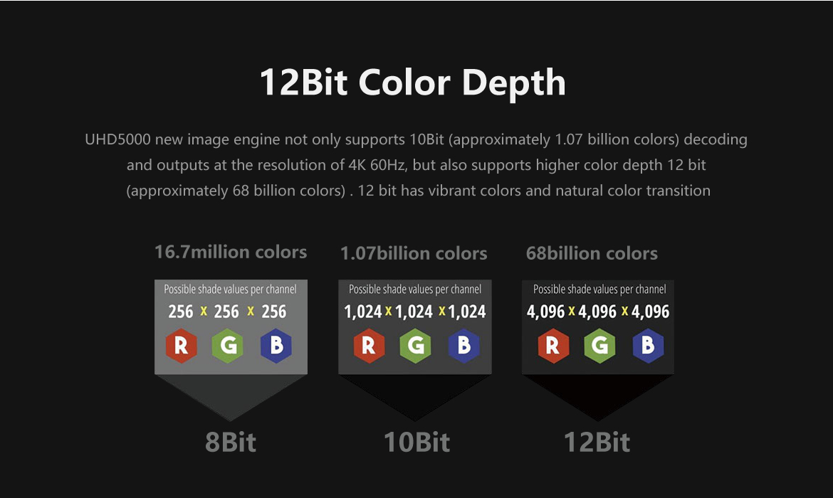 - HDMI 2.1 supports 4K 60Hz point-to-point output, HDR (HDR10/HLG/HDR10+/Dolby Vision), 12Bit, BT.2020 wide color range and YCbCr 4:4:4 color space. Supporting outputting raw three-dimensional multi-channel audio format based on object.