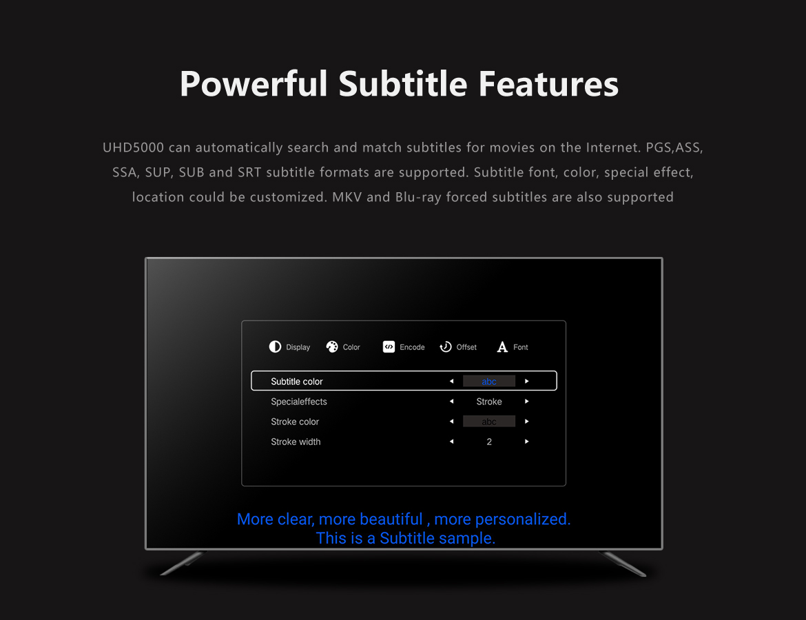 - Graphics special effects subtitles are supported and subtitles brightness can be adjusted. Subtitles can be downloaded. ZIDOO is the only one among the field to support BLURAY and MKV forced subtitle.