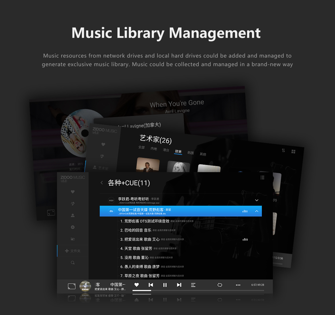- The newly upgraded version of Music Player supports seamless playback, personalized configuration, associated lyrics and songs matching.