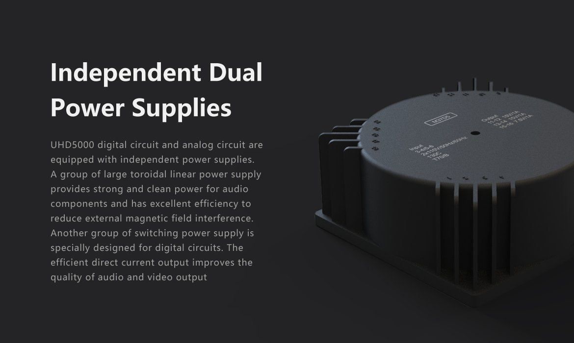 - High-quality switching power supply + large toroidal linear power supply, which is specially designed for audio and video circuits independently to ensure strong power source and good signal output.