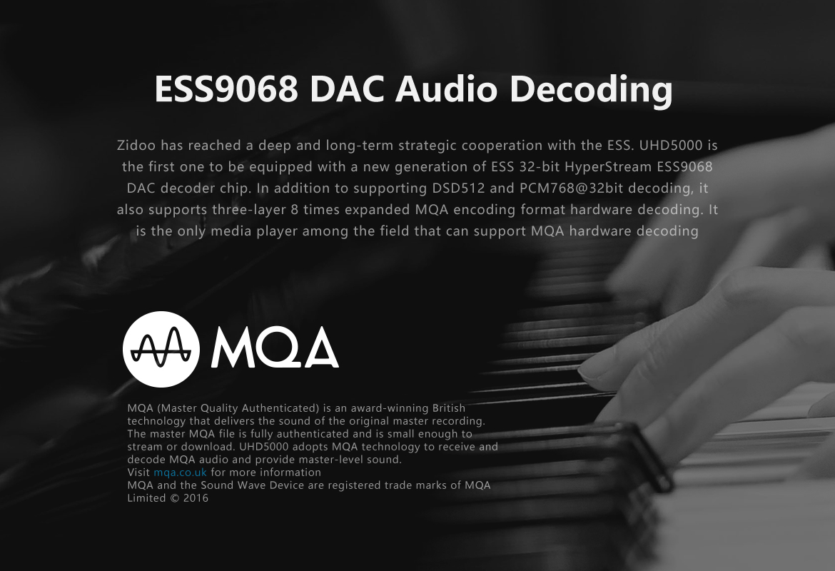 - Supporting MQA, SACD ISO (stereo), DSF, DFF, WAV, FLAC etc. and seamless playback and CUE track.