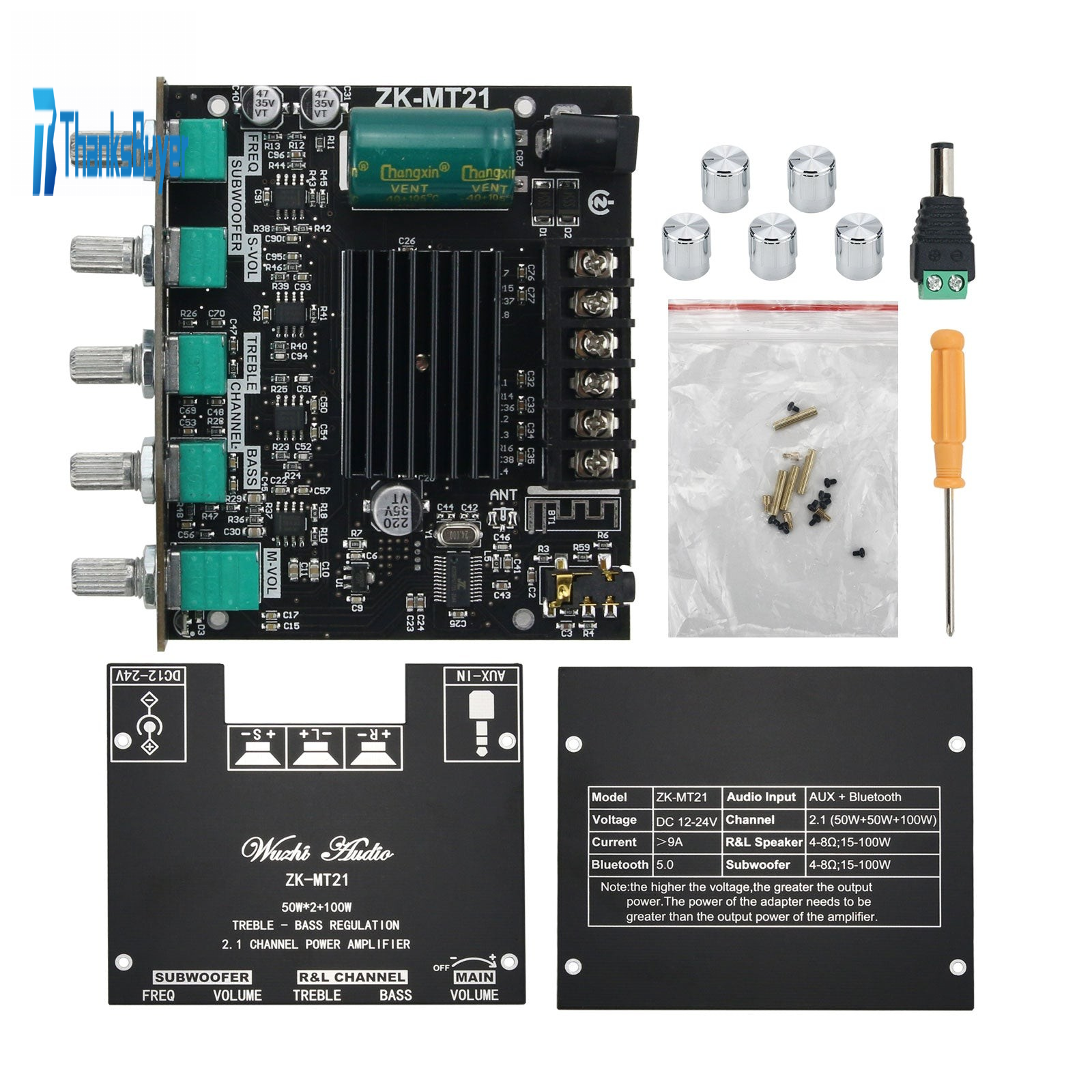 ZK-MT21 2.1 Channel Bluetooth Digital Power Amplifier Board Treble Bass Subwoofer 50W + 50W + 100W