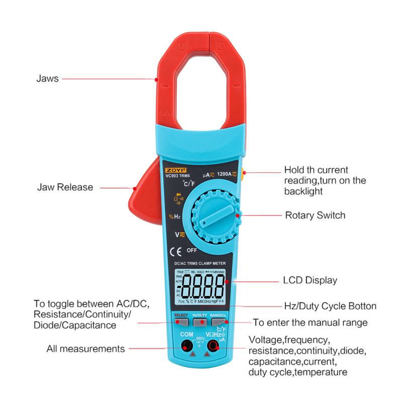 ZOYI VC903 1200A DC/AC TRMS Clamp Meter 6000 Counts Multimeter Tester Automatic and Manual Ranging