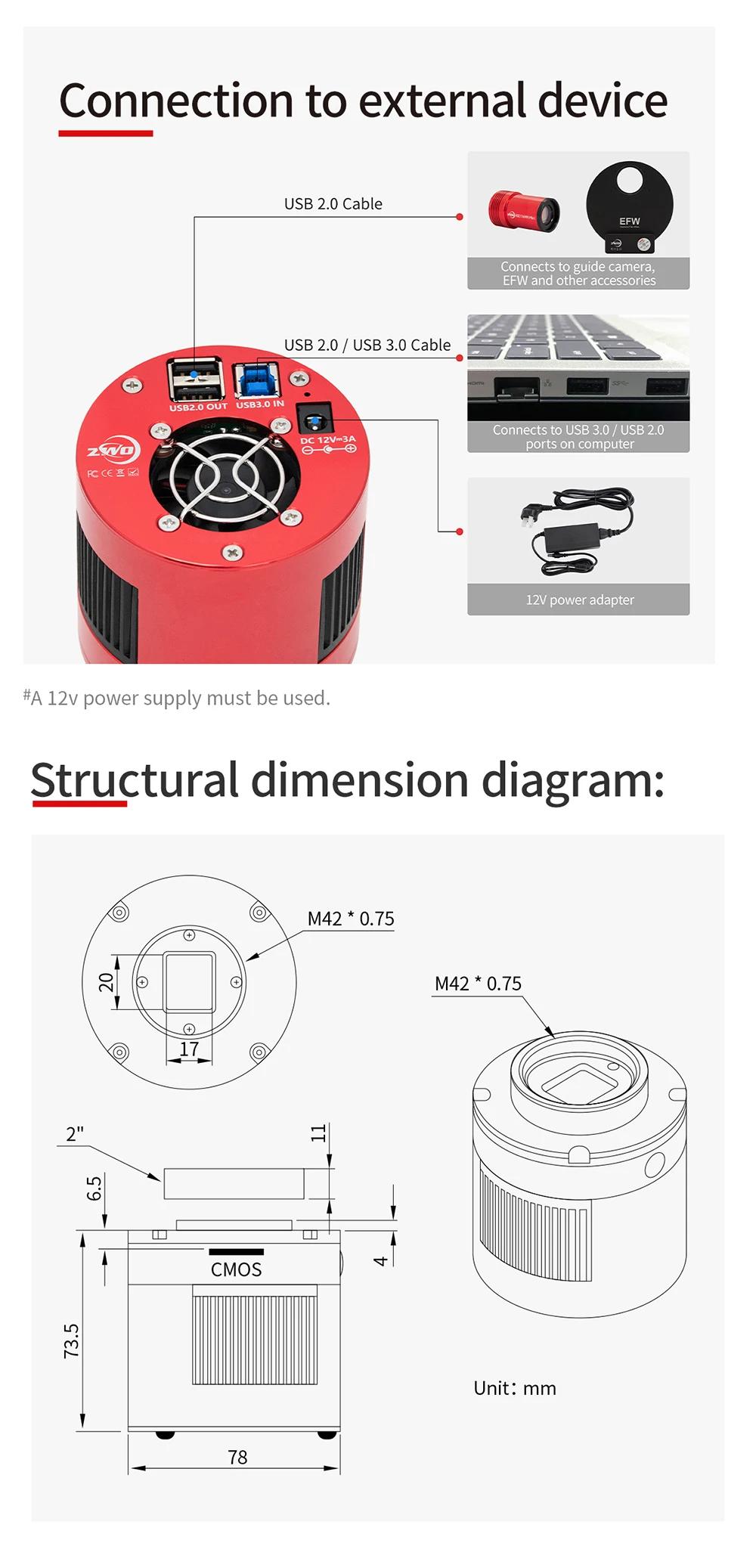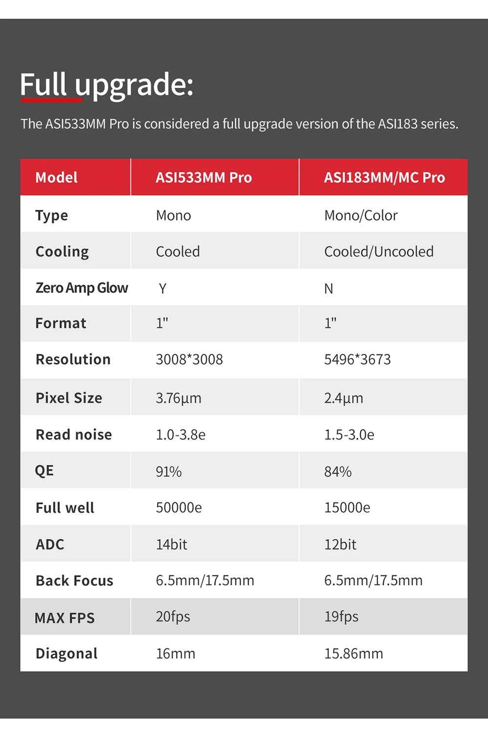 ZWO ASI533MM-Pro Cooled Mono Astronomical Camera Deep Sky Photography USB3.0 256M DDR3 Memory and 14Bit ADC