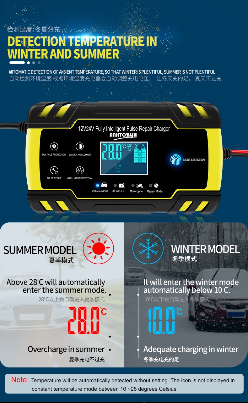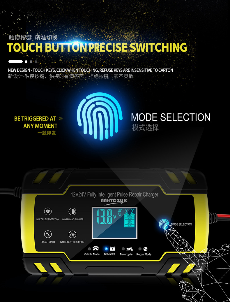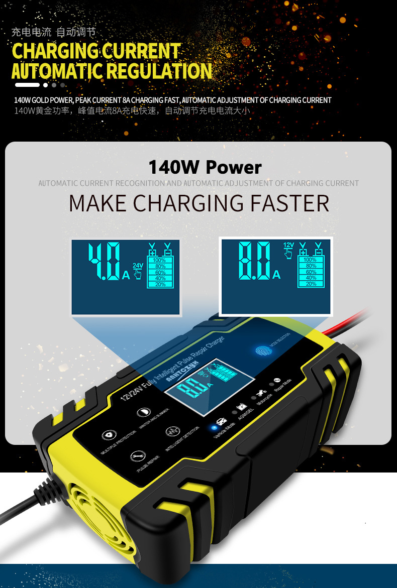 ZYX-J30 140W Battery Charger 12V 24V Pulse Repair Car Motorcycle Battery Charger Black & Yellow