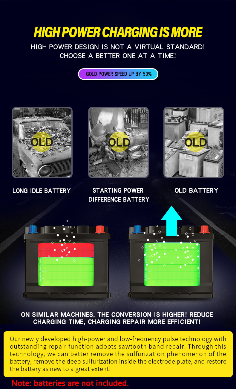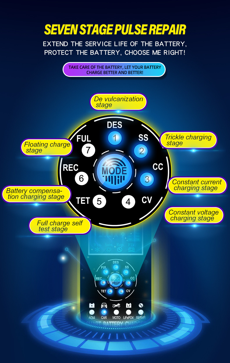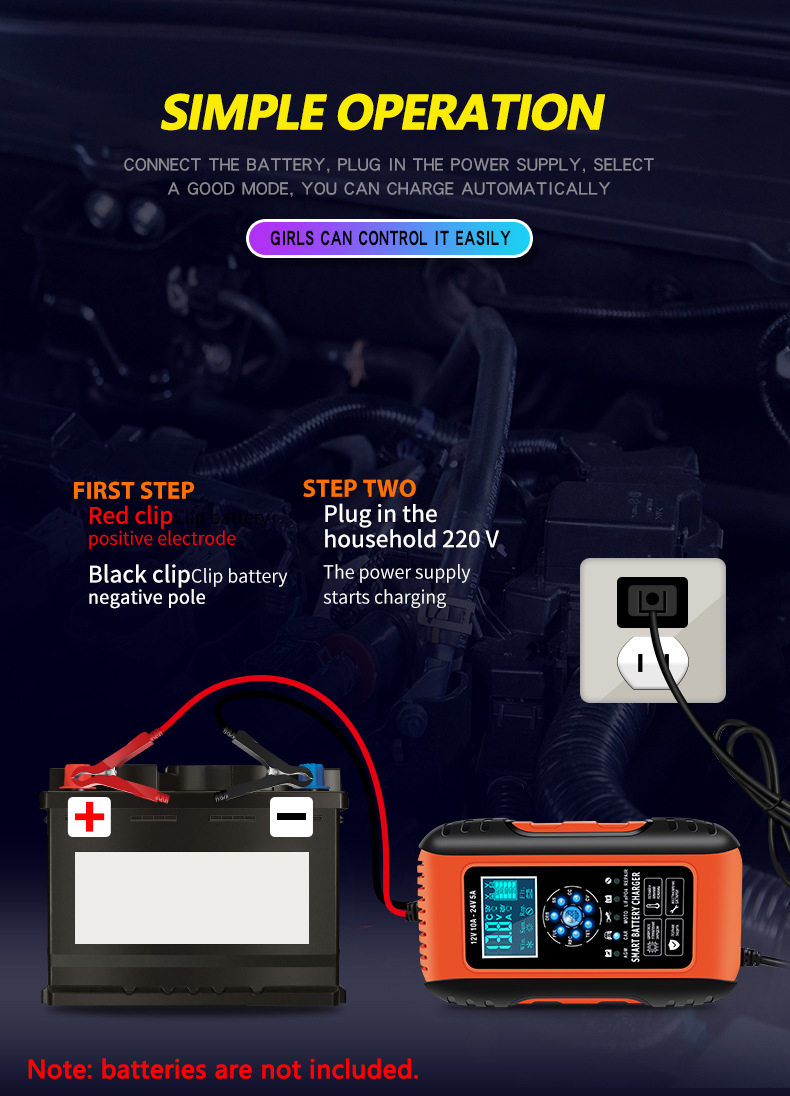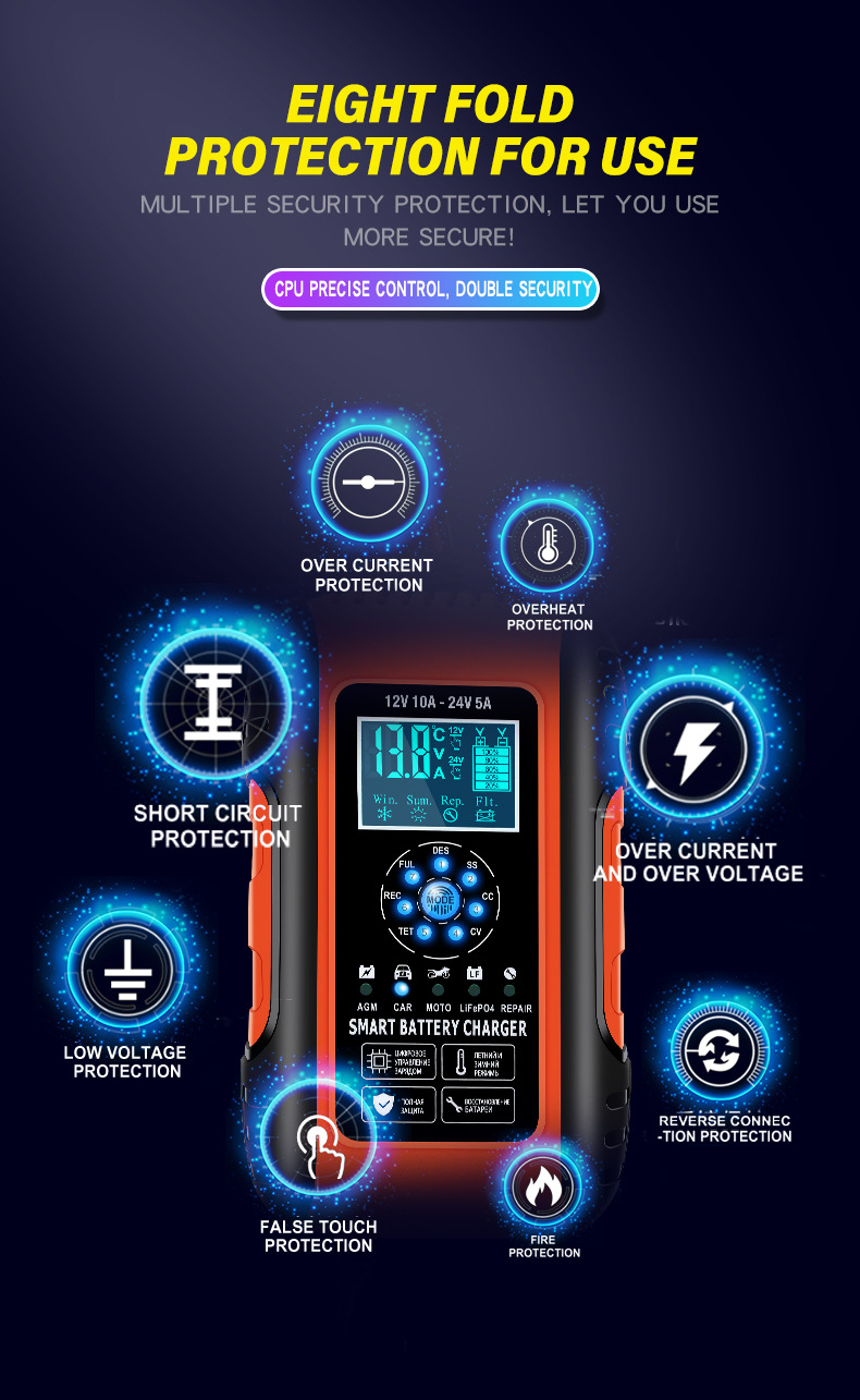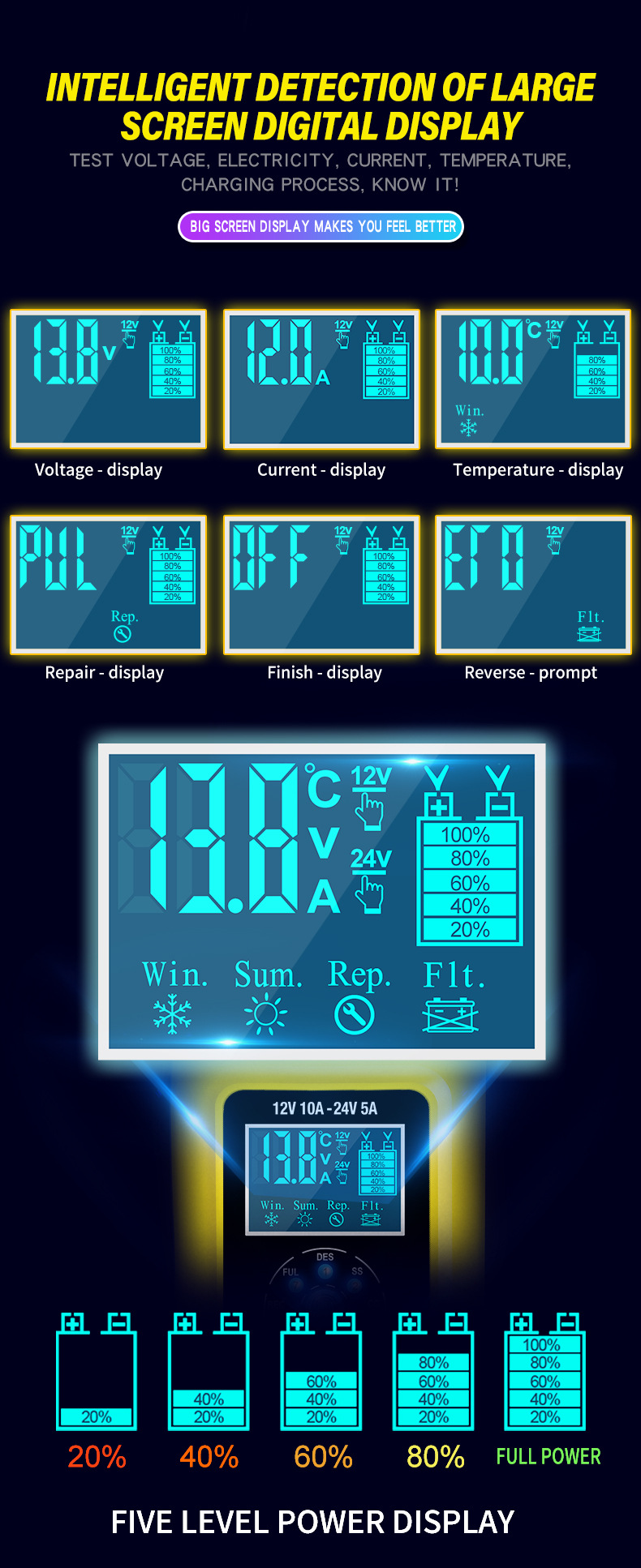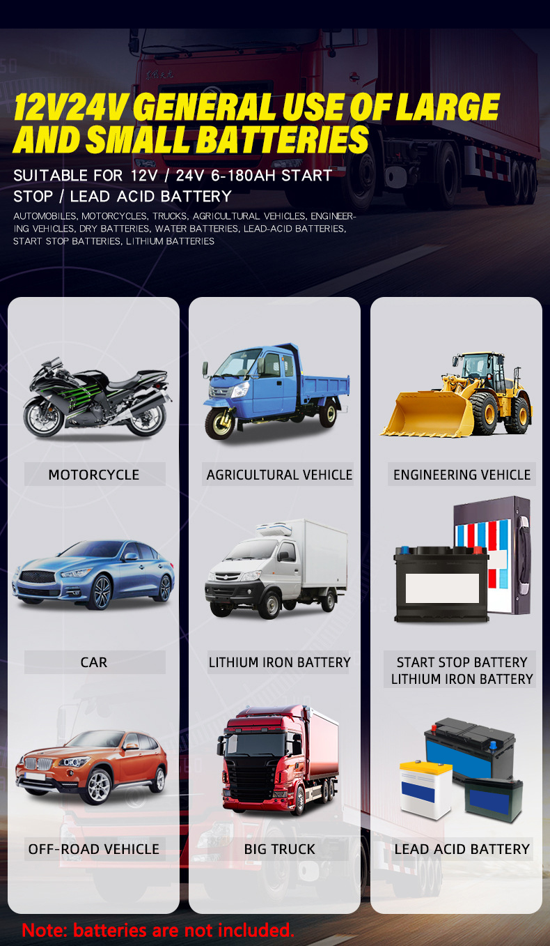 - Scope of application: 12V/24V 6AH-180AH lead acid battery, iron battery, and start stop battery