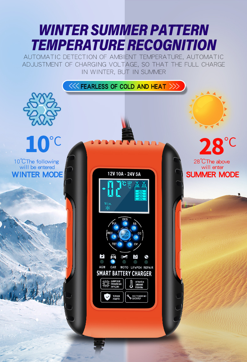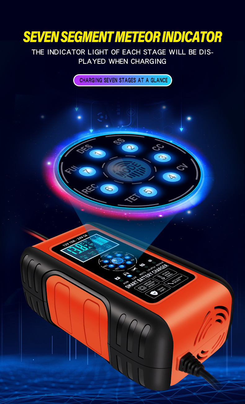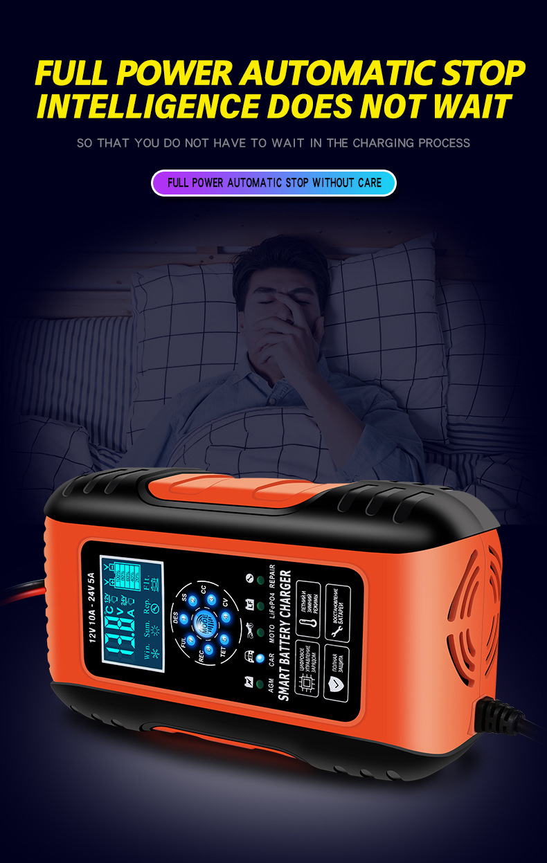 ZYX-J50 12V 10A 24V 5A Smart Battery Charger Car Battery Charger for Motorcycle Vehicle Batteries