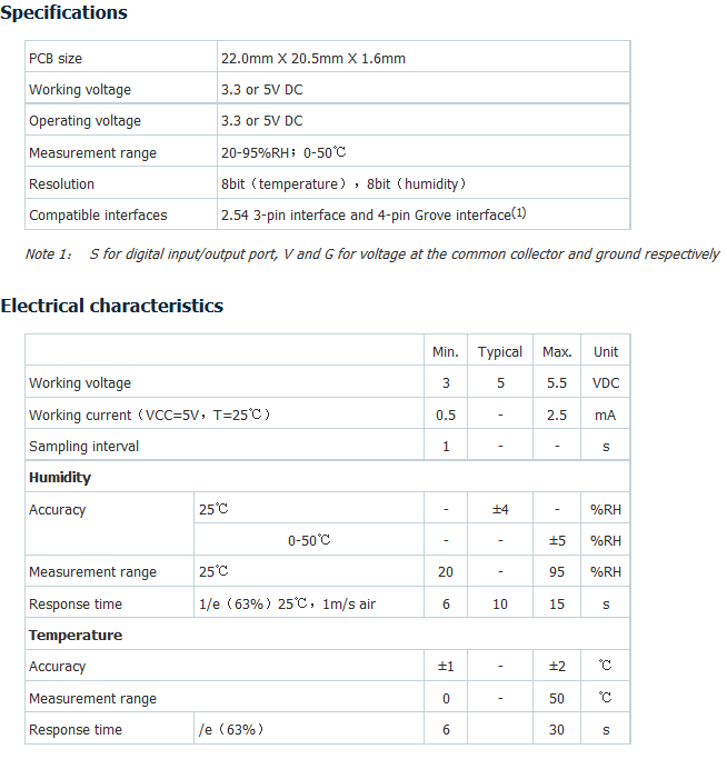 3 wires e-block interfaces, input 5V-GND. S pin is as output. According to the DHT11 single line output protocol, output DHT11 single line protocol libraries and code.