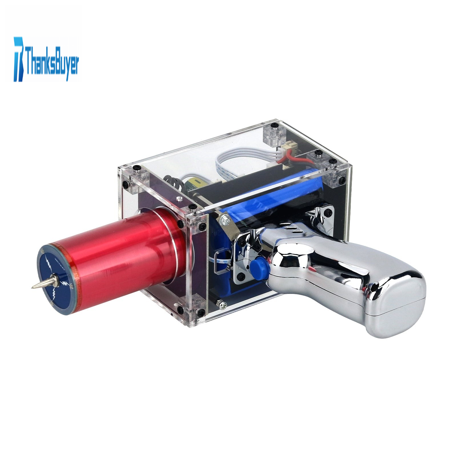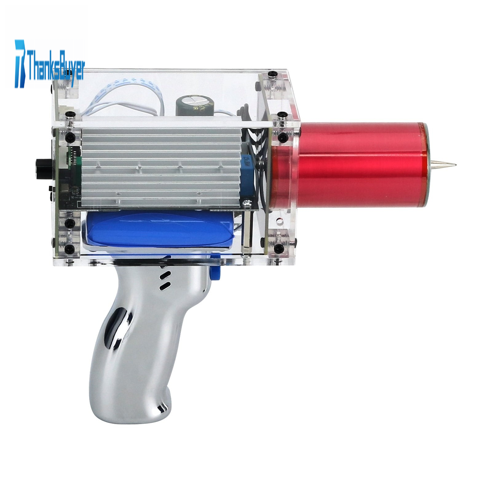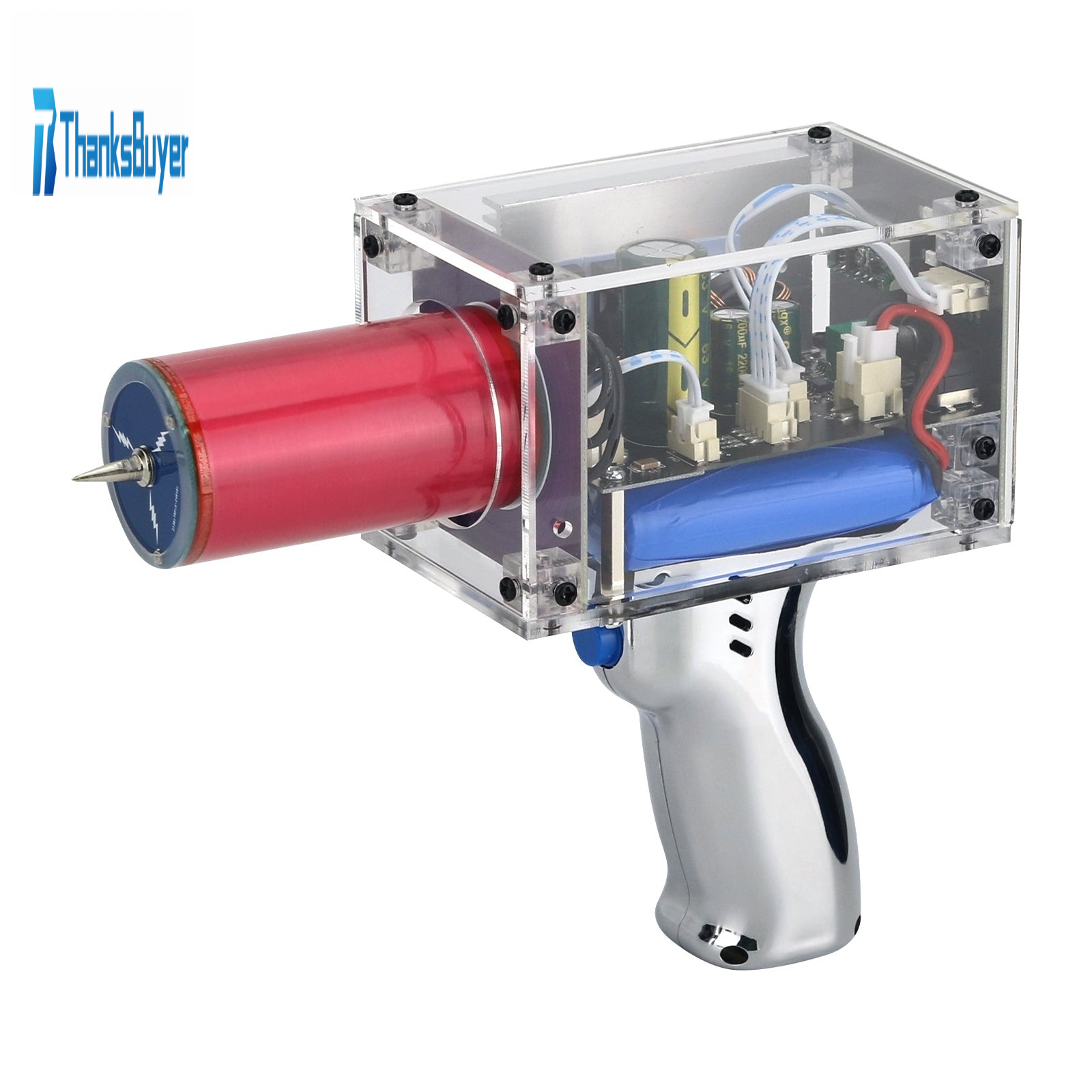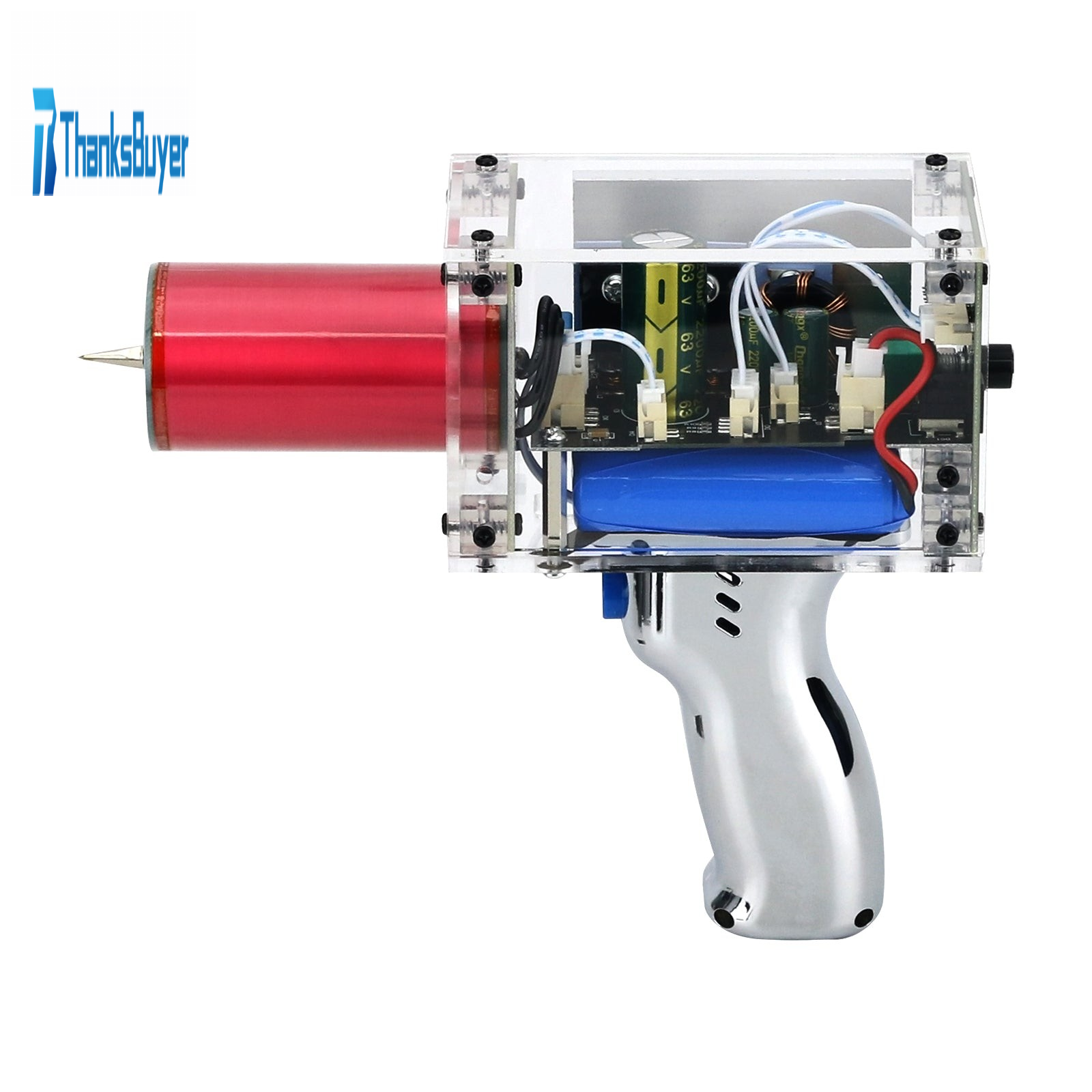 - The third generation Plus  enhanced version 2200mAh (transparent) Tesla coil gun adopts a fully black injection molded shell, paired with a 2200mAh lithium battery, which can generate approximately 7200 flashes of lightning.