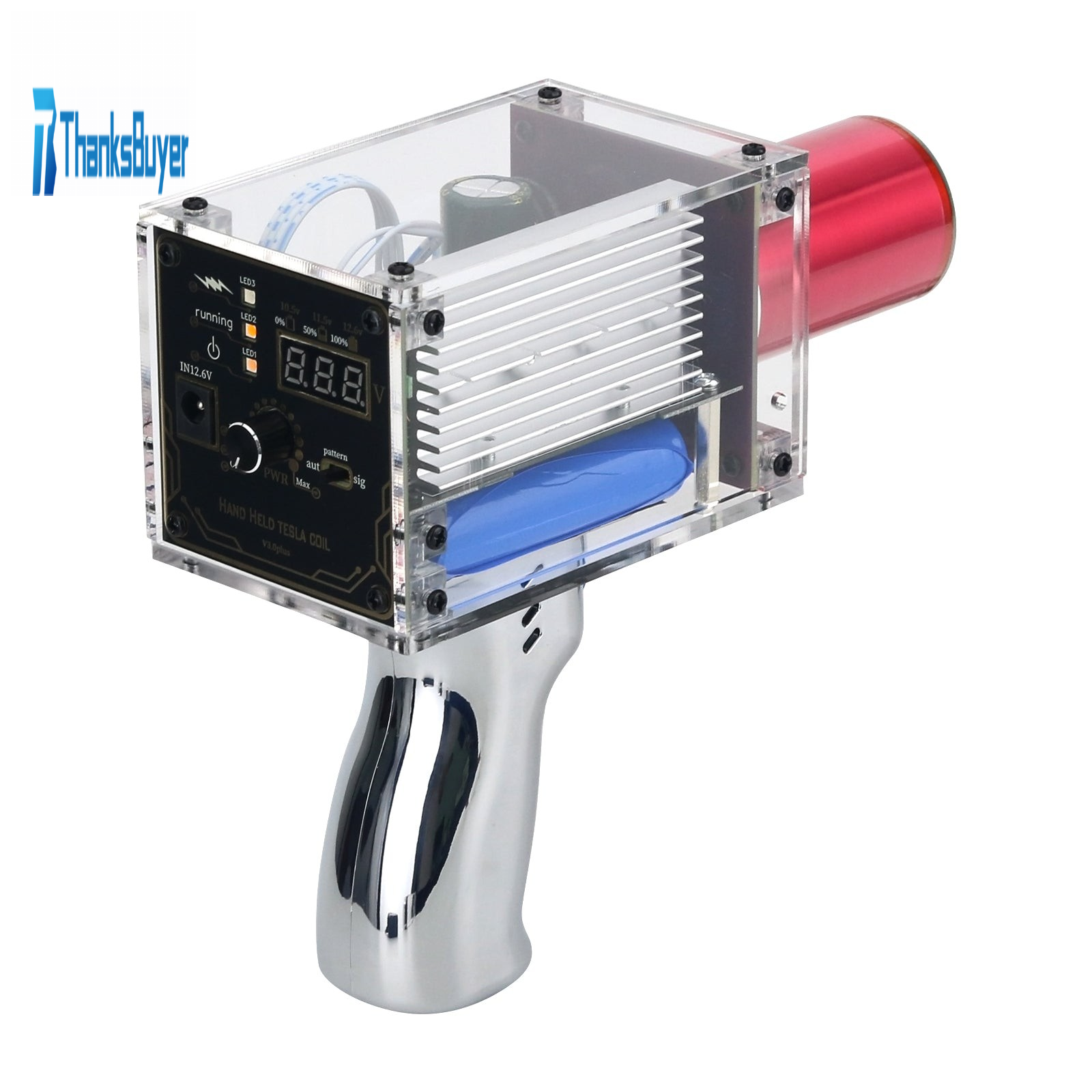 - The third generation Plus enhanced version (transparent) Tesla coil gun is equipped with a 3150mAh lithium battery for Panasonic, which can generate approximately 10000 flashes of lightning.