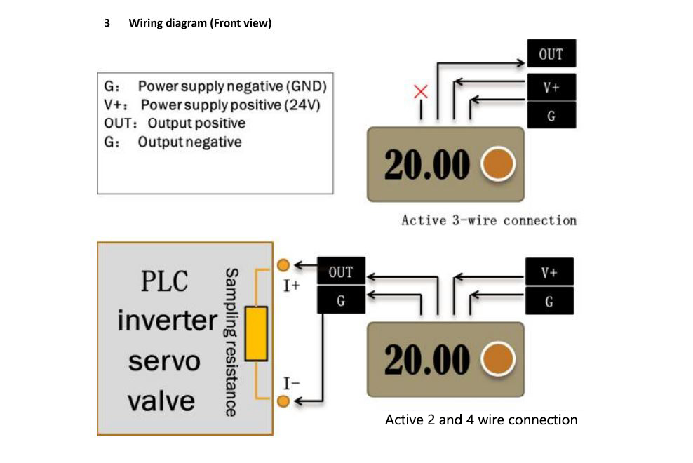 - Output current: default 0-20mA (can be set to 4-20mA)