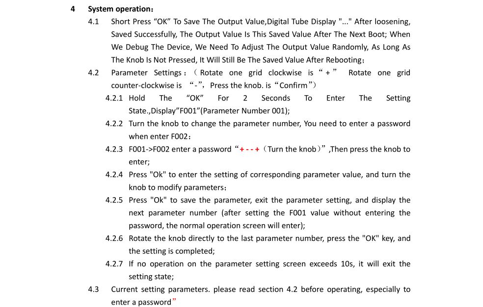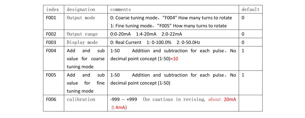 - Minimum knob adjustment number 0.01mA: the last number plus or minus 1