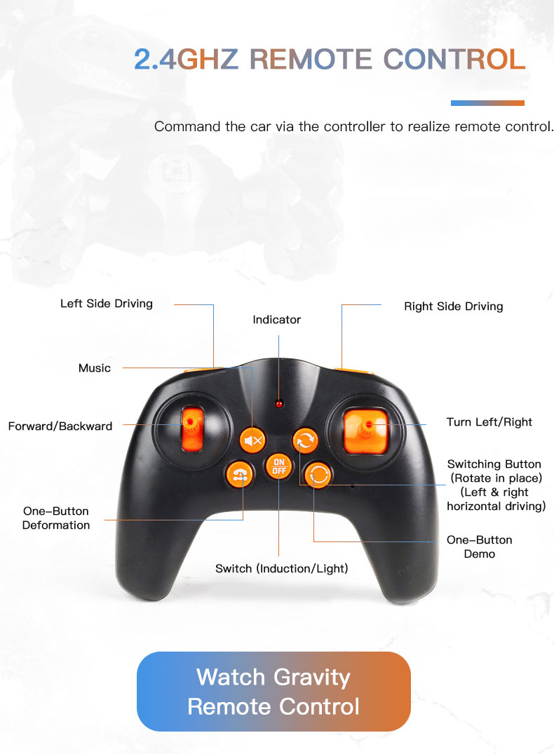- 2 Control Modes: 2.4GHz Remote Control & Watch Remote Control