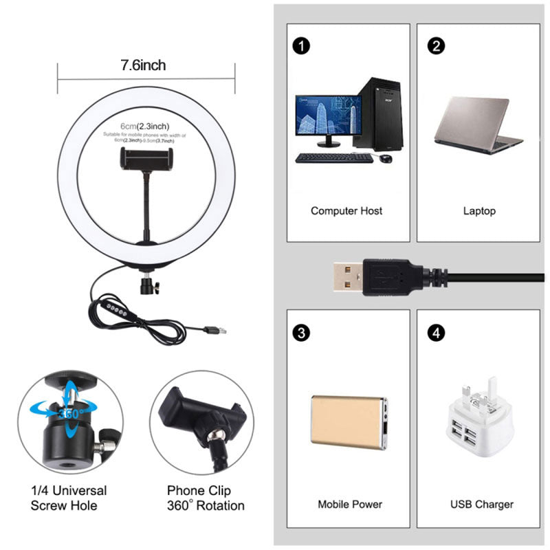 1. LED ring light can be mounted on the holder and take it anywhere, it can also be removed from the stand at any time, the tripod ball head can 360 degree rotating can free to adjust to any angle (The holder is not included).