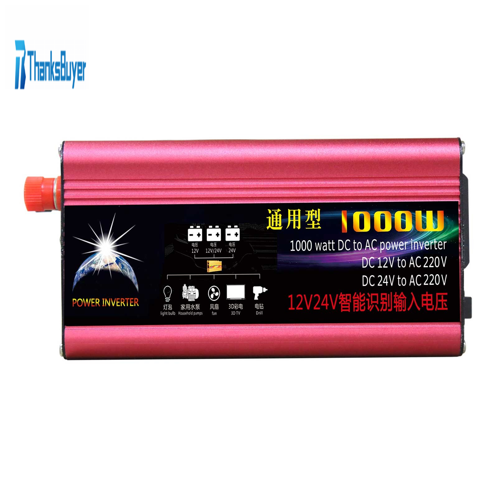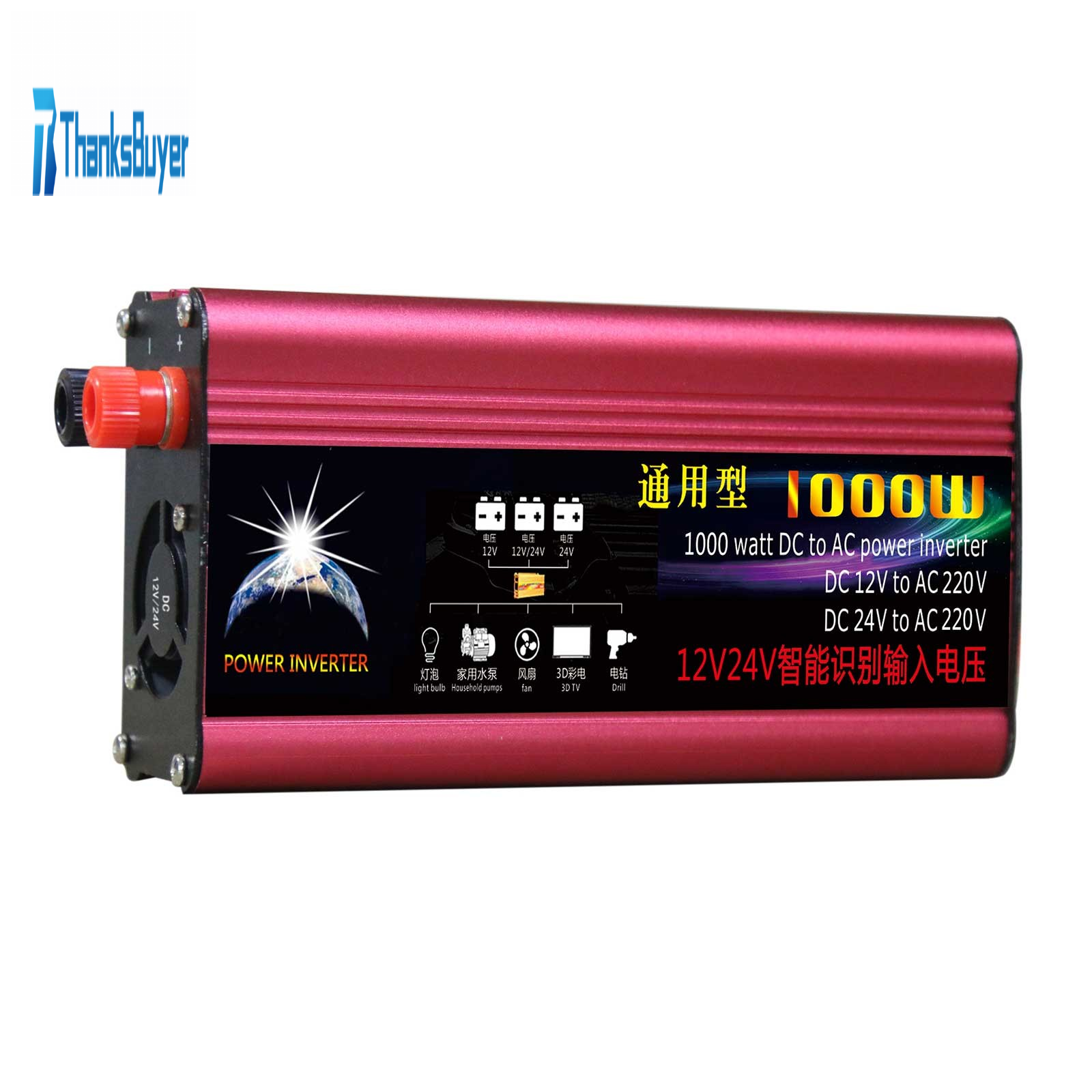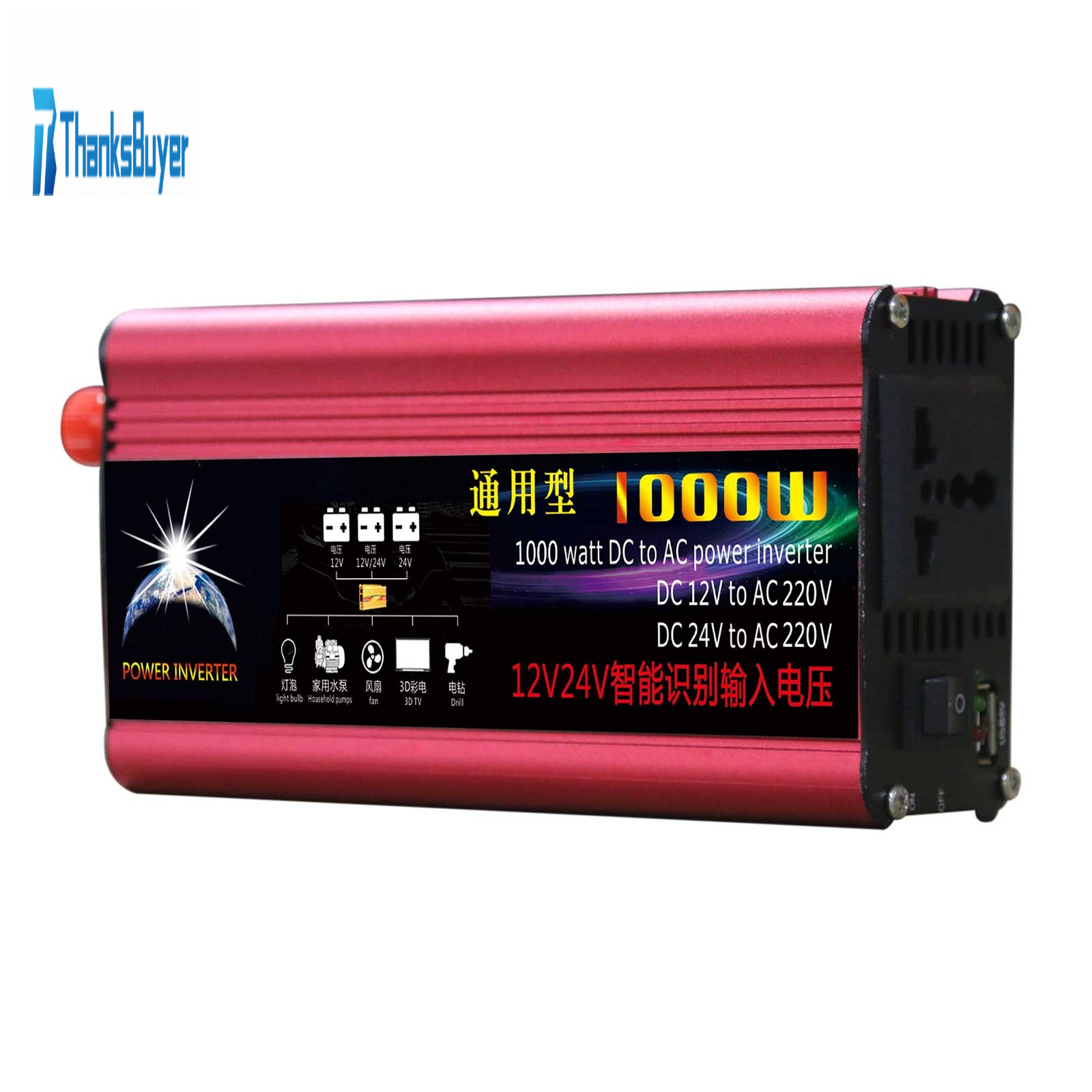 1000W Common Solar Power Inverter Car Power Inverter DC 12V/24V to AC 110V Modified Sine Wave
