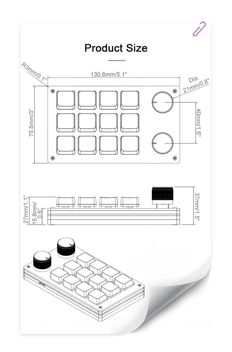 - Material: ABS (keycap) + acrylic + metal (knob)