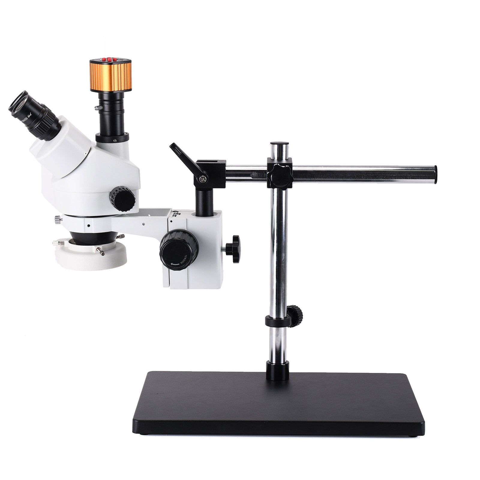 16MP Trinocular Stereo Microscope Continuous Zoom 7~45X w/ Camera 56 LED Light Universal Bracket Mat