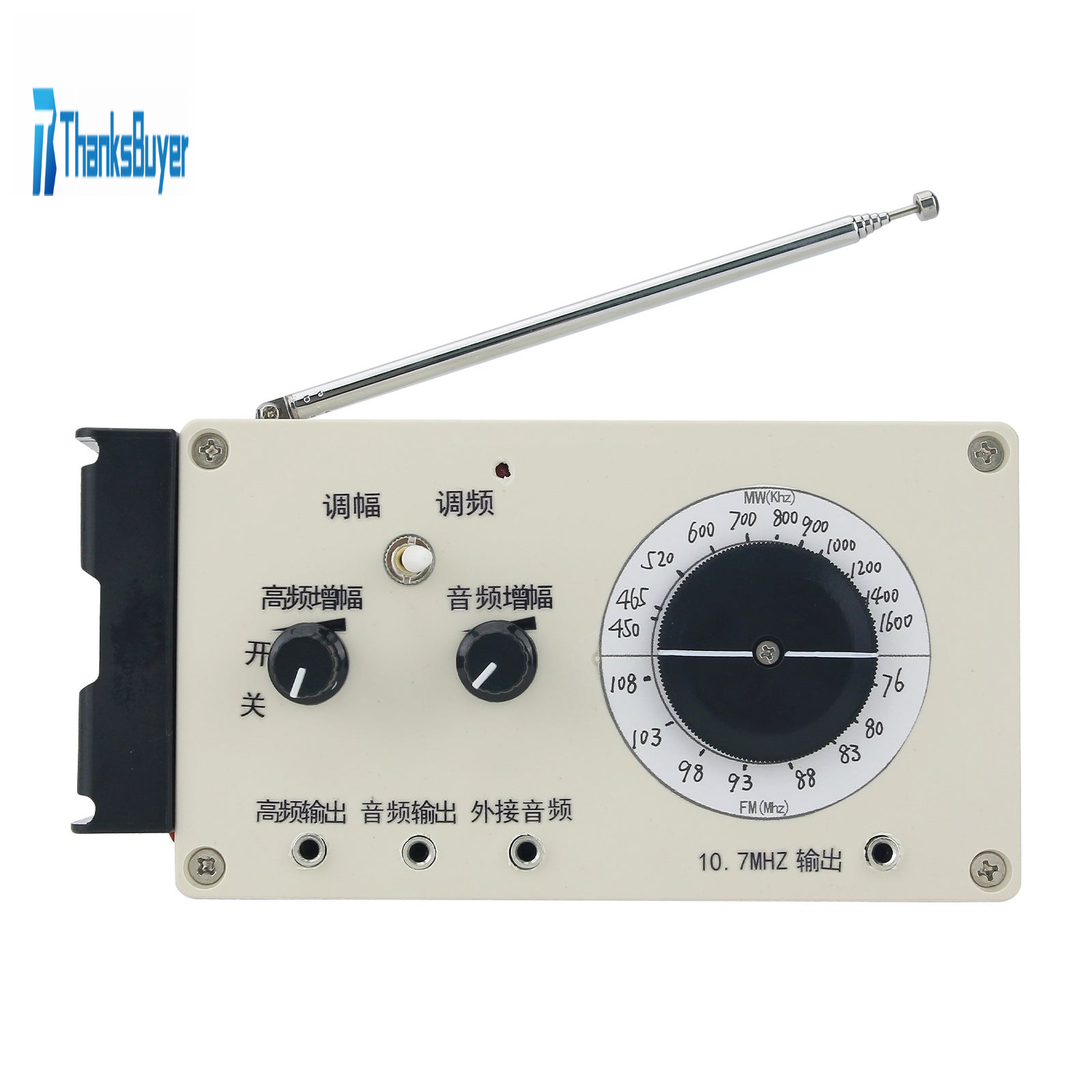 The FM range is about 76-108MHZ and and there is a separate 10.7MHz IF signal output. The AM medium-wave frequency range is 400kHz-1650kHz, including the intermediate frequency 465kHz.