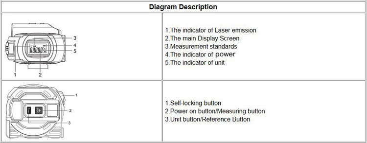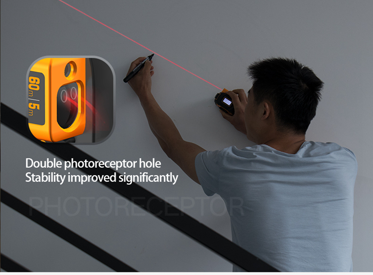 - Dual Mode Ranging: laser meter 40m/60m and tape measure 5m