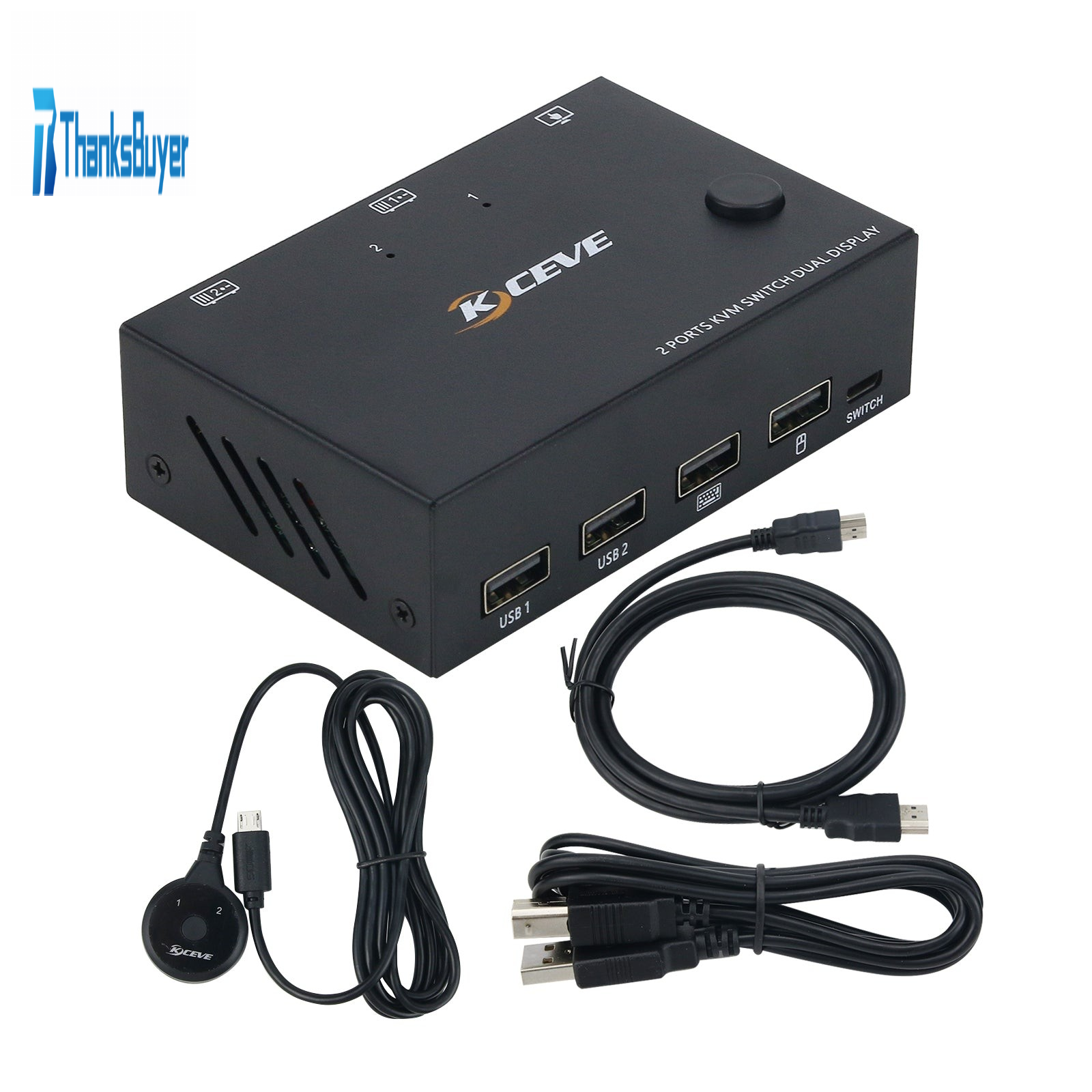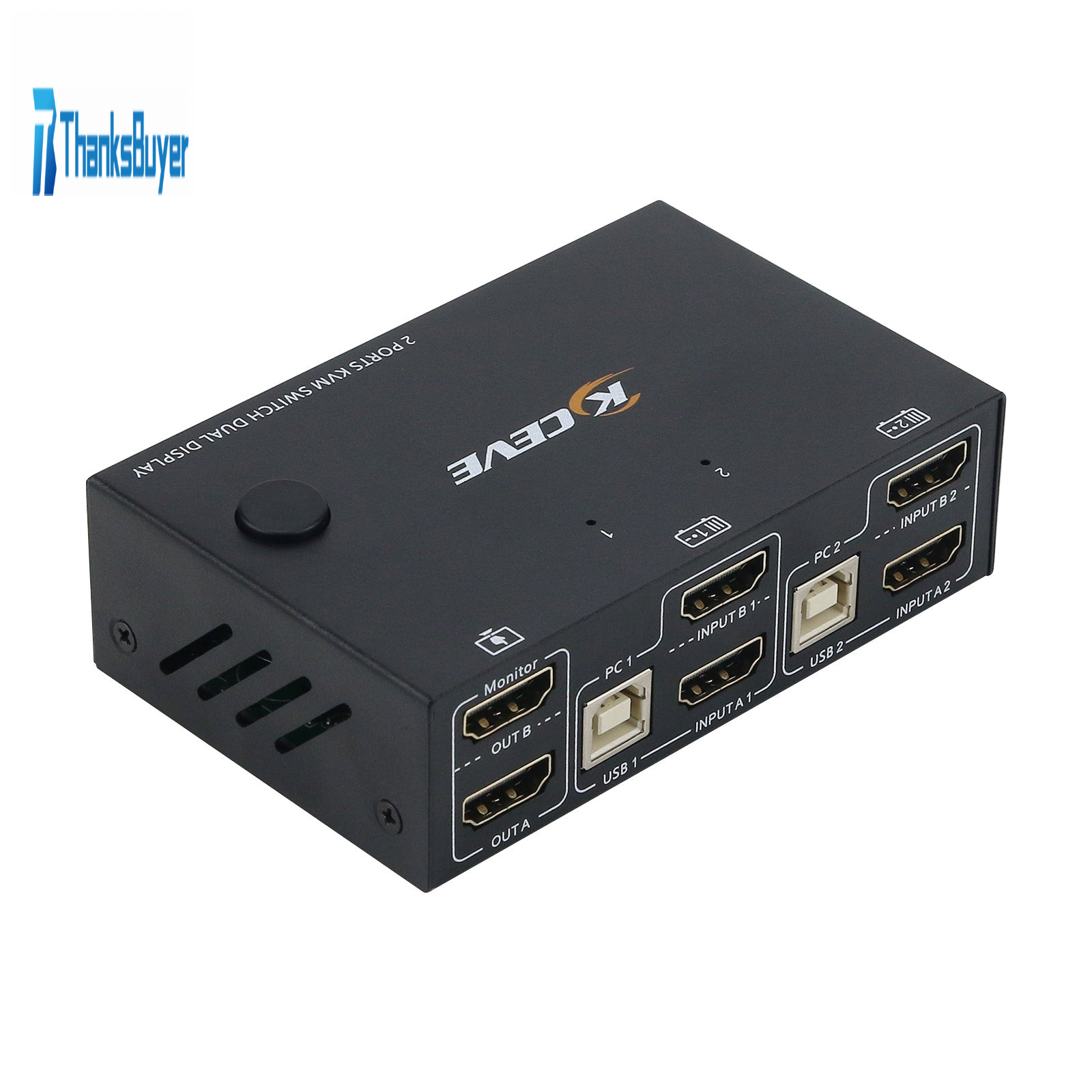 2 Ports KVM Switch Dual Display 4K HDMI KVM Switch Dual Monitor KC-KVM202 for Mac OS Windows Linux