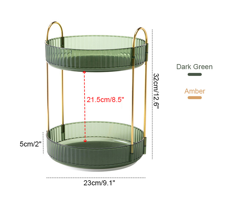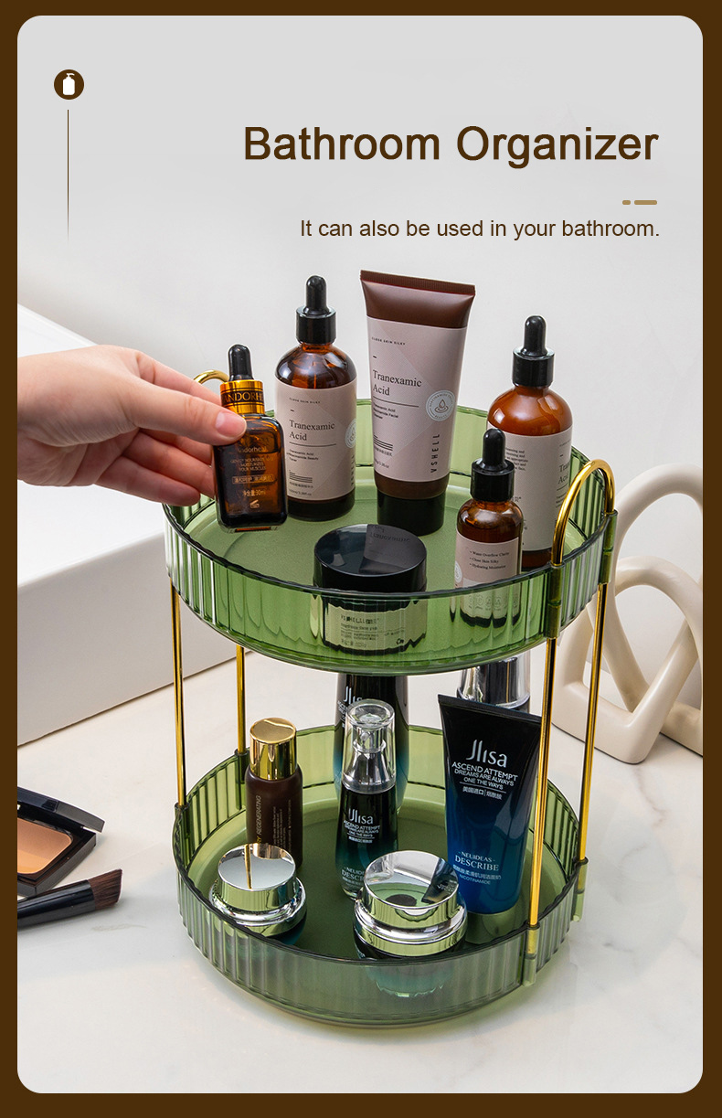 2-Tier Makeup Organizer 360° Rotating Makeup Shelf Organizer Kitchen Bathroom Organizer Dark Green
