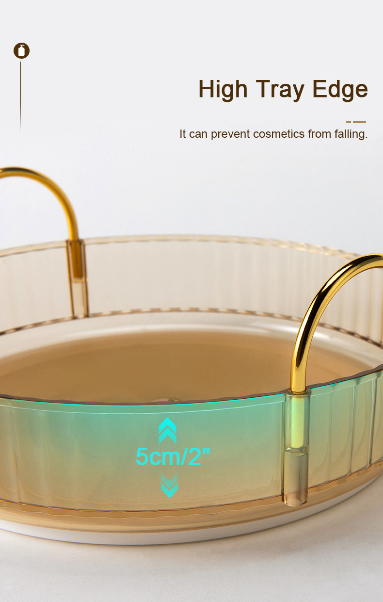 - 360-Degree Rotating: 360-degree rotation makes it more convenient to access to your makeup. With smooth edge and high tray edge, it can prevent cosmetics from falling while the organizer is rotating.