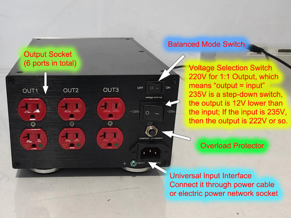 220V Audio Power Purifier Isolation Transformer 1000W High Quality Balanced Audio Ring Transformer (Normal Sockets)