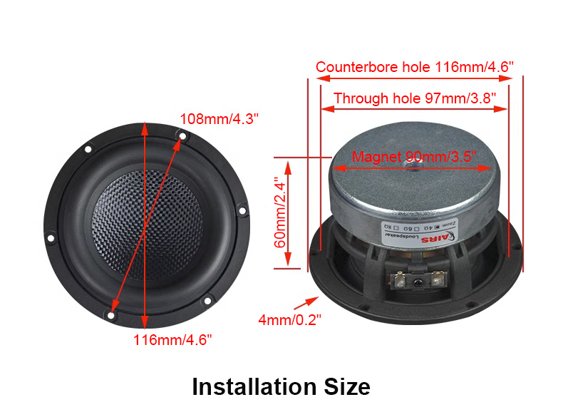 2PCS AIRS 4" 8 Ohm Super Bass Speakers Loudspeakers Speaker Unit for 2.1 Speakers Two-Way Speakers