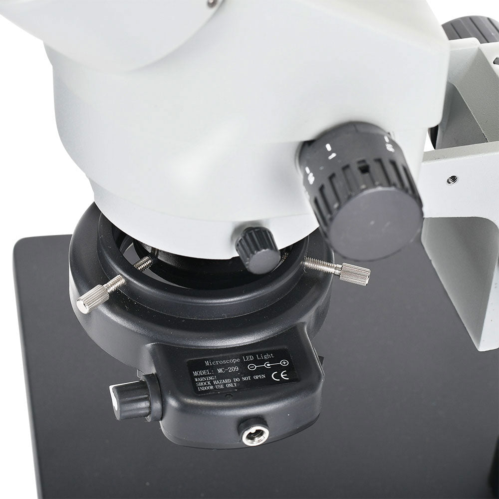 - An excellent stereo inspection microscope with intensity-adjustable 144-LED ring light