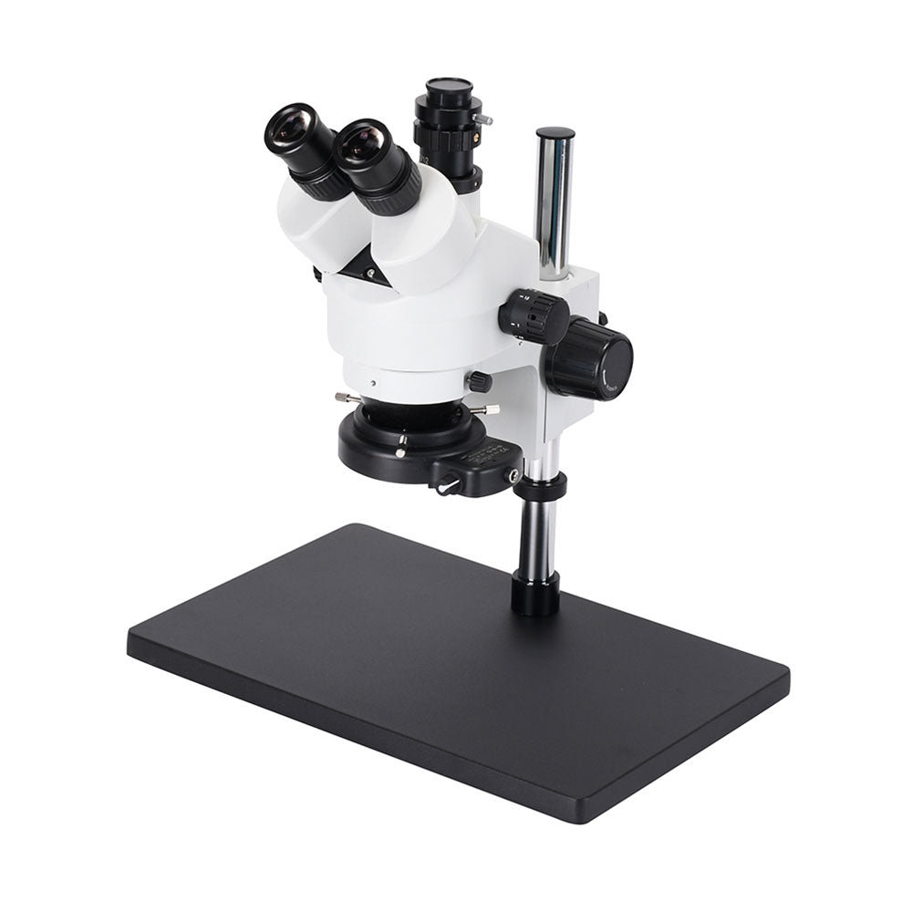 This stereo microscope has a 144-LED ring light that offers super widefield optics and 3.5X-90X zoom magnification power with a cool light illumination system. It is an ideal instrument for industrial inspection and/or biological lab applications. This microscope is perfect for gemologists , manufacturing engineers, dental lab technicians, and anyone in electronic and semiconductor industries.
