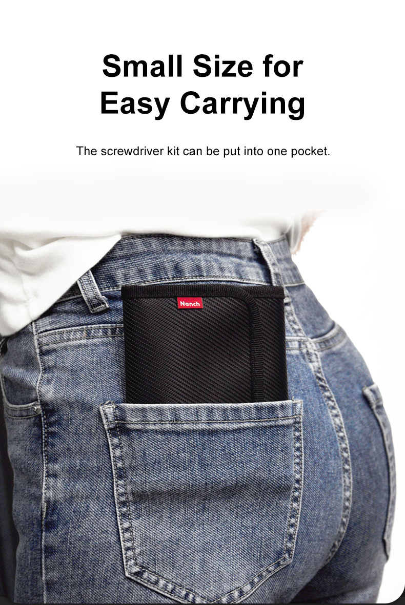 - Small size makes it easy to carry. The screwdriver kit can be put into one pocket.