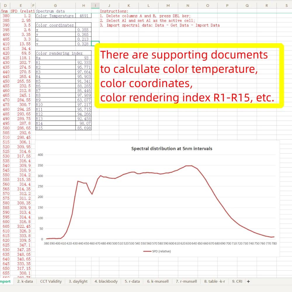 - The software has an integration function, which can measure the spectrum of brief light sources, such as the spectrum of a remote control or flash.