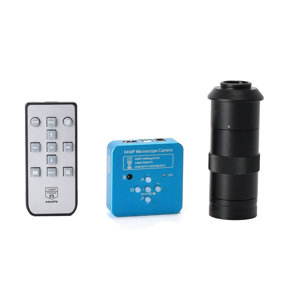 34MP 2K Industrial Microscope Camera Stand Kit USB Outputs w/ 100X C-Mount Lens 56-LED Ring Light