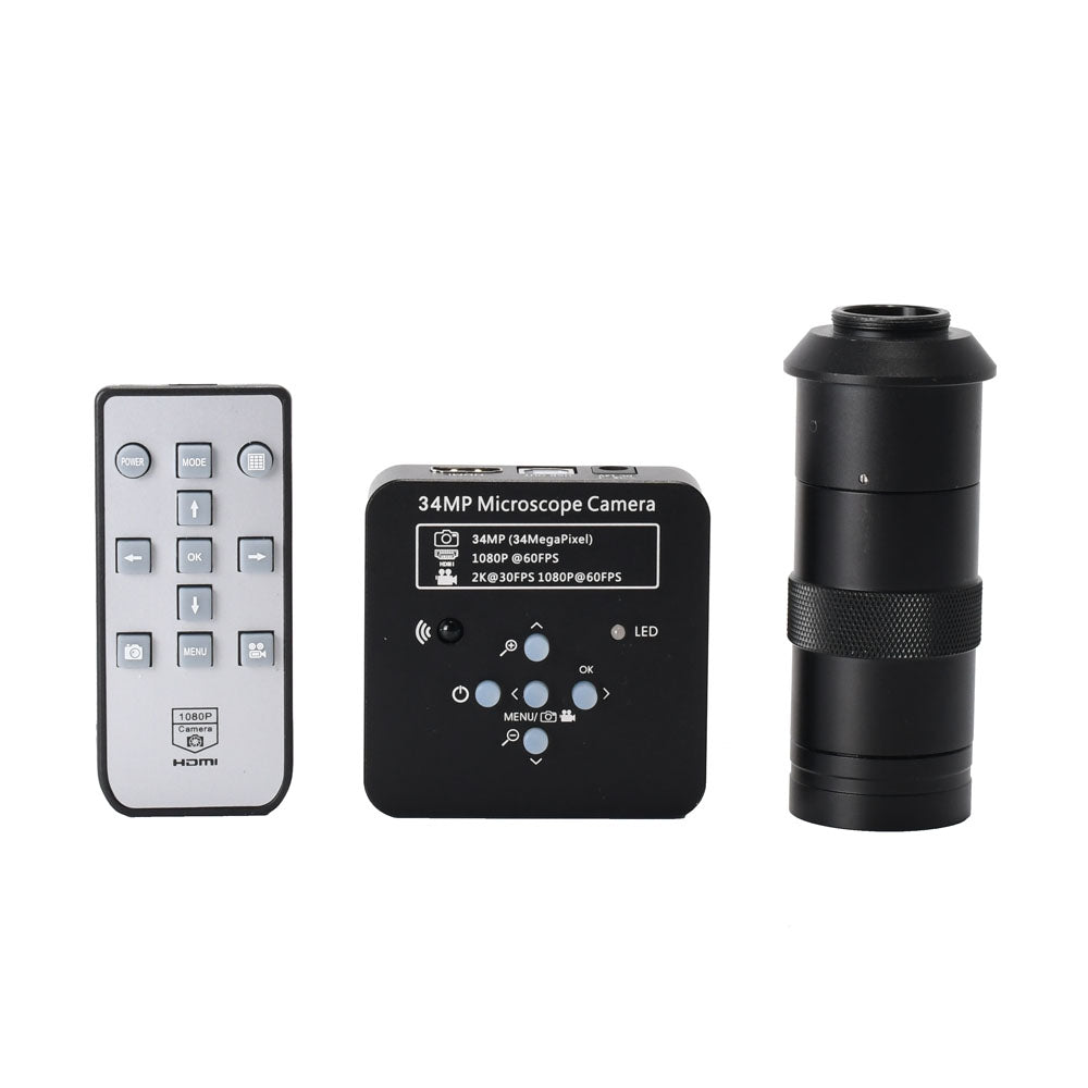 34MP Industrial Microscope Camera Kit w/ 8" Screen 100X C-Mount Lens 60 LED Light For PCB Repair