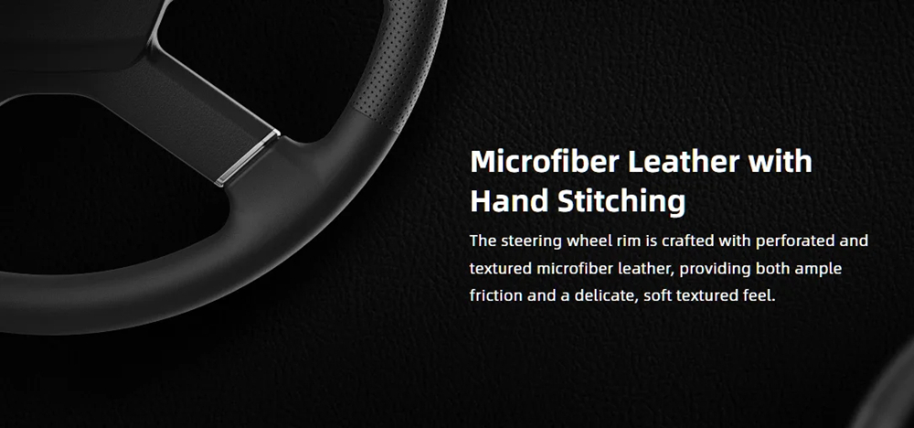 The steering wheel rim is crafted with perforated and textured microfiber leather, providing both ample friction and a delicate, soft textured feel.