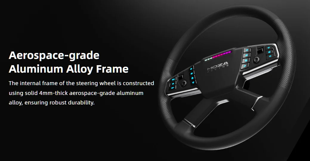 The internal frame of the steering wheel is constructed using solid 4mm-thick (0.16-inch) aerospace-grade aluminum alloy, ensuring robust durability.
