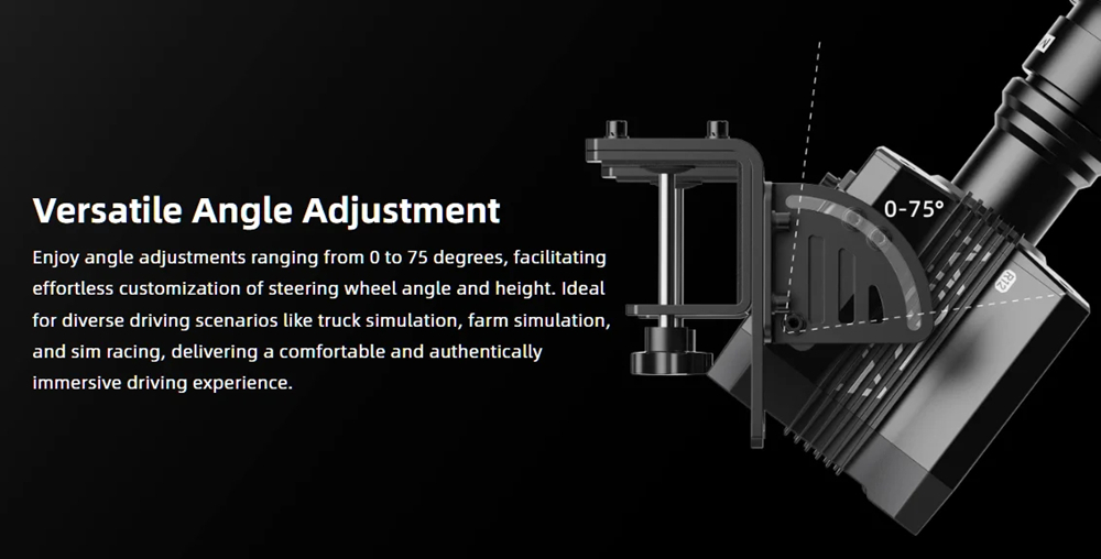 Enjoy angle adjustments ranging from 0 to 75 degrees, facilitating effortless customization of steering wheel angle and height. Ideal for diverse driving scenarios like truck simulation, farm simulation, and sim racing, delivering a comfortable and authentically immersive driving experience.