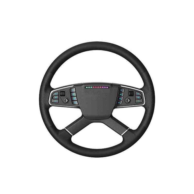 The world's first steering wheel tailor-made for truck simulators, featuring the popular four-spoke design it combines a modern yet classic appearance with chrome accents and utilizes the common 400mm/15.8" diameter found in real truck steering wheels.