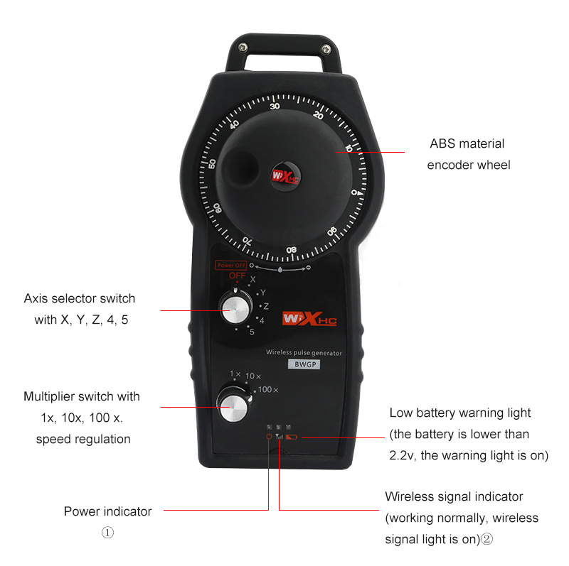 - Anti-interference design, stable and reliable, using 32 sets of wireless handwheel in the same room, without affecting each other