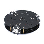 The three-wheel drive omnidirectional wheel platform uses omni wheels to achieve omnidirectional movement, including longitudinal movement and lateral movement. It is a double-tier platform, users can increase the number of tiers freely, providing more space. For example, you can install electronic devices such as controllers, sensors, cameras, etc. Suitable for DIY. This is a very good omni wheel learning chassis.