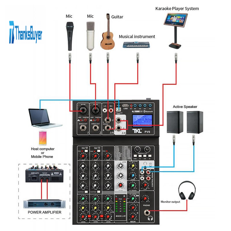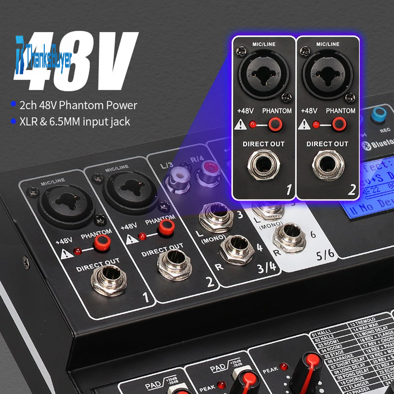 6 Channel DJ Sound Mixer Portable Digital Mixer With 24 DSP Echo OTG Jack USB 48V Phantom Power Sound Card Mixing Console REC