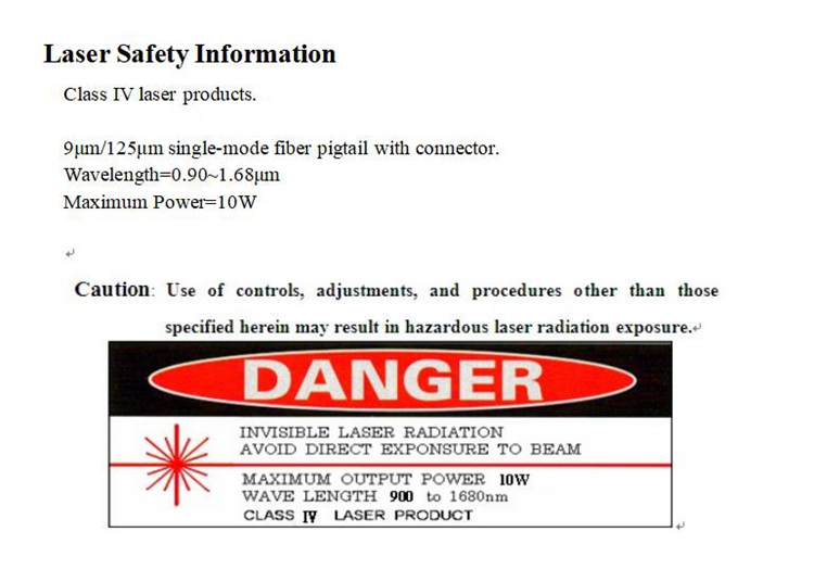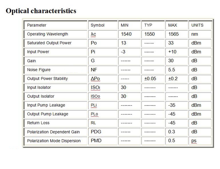 - Output optical power: 26 - 40dBm, 400 - 5000mW