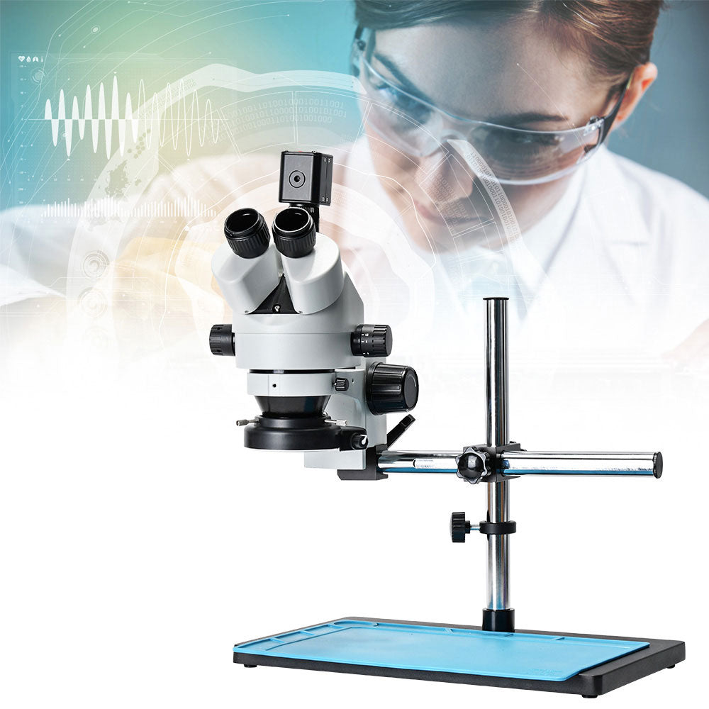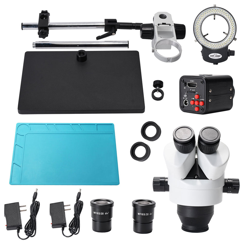 7-45X Simul-Focal Trinocular Stereo Microscope Kit w/ 24MP HD Microscope Camera 144-LED Fill Light