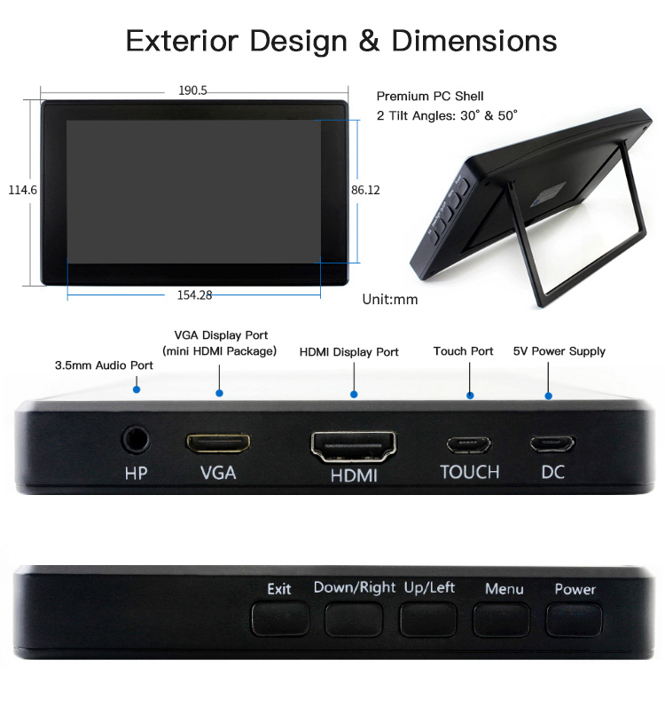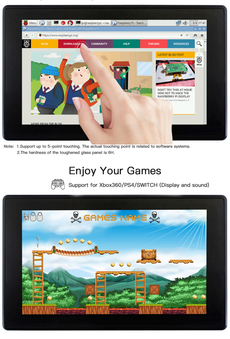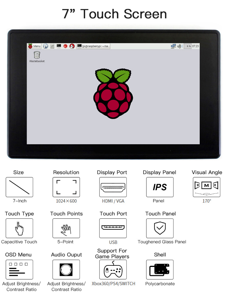 7" HDMI LCD (H) Display Screen with Case 1024x600 IPS Capacitive Touch Screen LCD for Raspberry Pi BB
