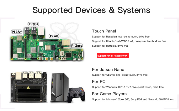 - When works with Raspberry Pi, supports Raspbian/Ubuntu/Kali/Retropie/WIN10 IOT, driver free