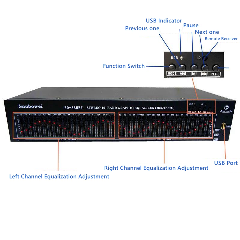 885BT 220V 40-band Stereo Graphic EQ Bluetooth Equalizer Audio Receiver Support USB Input with Remote Control