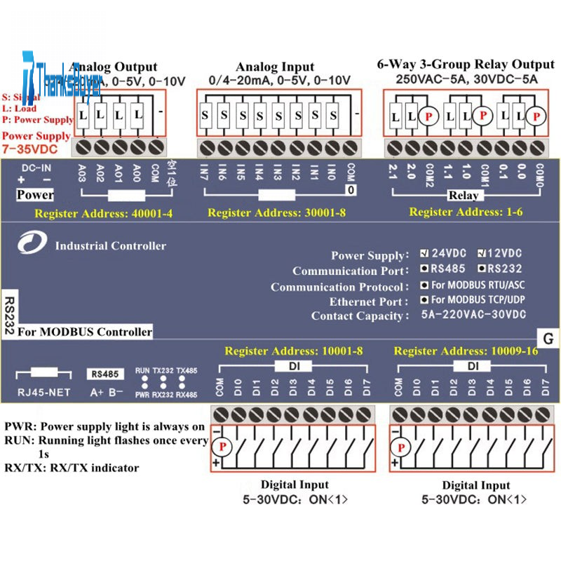 Support RS232, RS485 interface, for Modbus protocol touch screen, text screen.