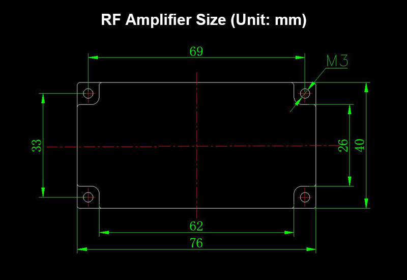 * Before using this RF amplifier module, ensure that all instruments and equipment share a common ground (i.e., no potential difference exists between them). Then connect the devices using RF cables, and always connect a load. Operating without a load is strictly prohibited, especially for power amplifiers.